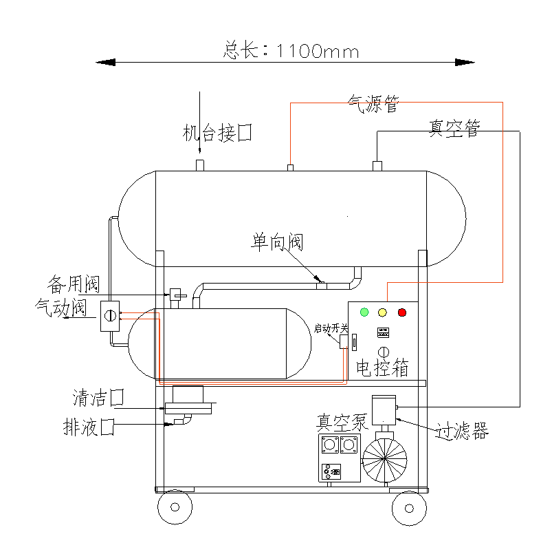 固定式系統一般包括底盤基座、真空泵、真空緩沖罐、控制箱、真空附件(真空閥、真空管道真空過濾器等)、真空度控制系統組成,一般適合抽氣量大,工作條件苛刻等工況例如;3立方真空負壓站,配置2臺302立方真空泵,真空過濾器組,在自動控制模式下瞬間抽氣速度可達上干立方每小時時,遠大于單泵和雙泵直接抽氣的速度。